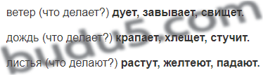 ветер (что делает?) ..., ..., ... дождь (что делает?) ..., ..., ... листья (что делают?) ..., ..., ...