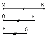 АВС так, что АВ = МК, ВС = FG, АС = ОЕ.