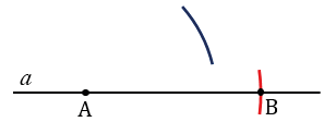 ставим точку А, с помощью циркуля измеряем отрезок МК и строим окружность с центром в точке А радиуса МК (всю окружность строить необязательно, смотри, выделенное красным цветом). Точку пересечения окружности с прямой